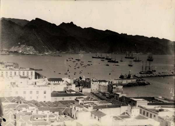 Vista general de la ciudad donde se divisa el Castillo y el Puerto de Santa Cruz de Tenerife