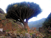 Pequeñas casitas y un gran Drago encontramos junto al sendero de bajada .